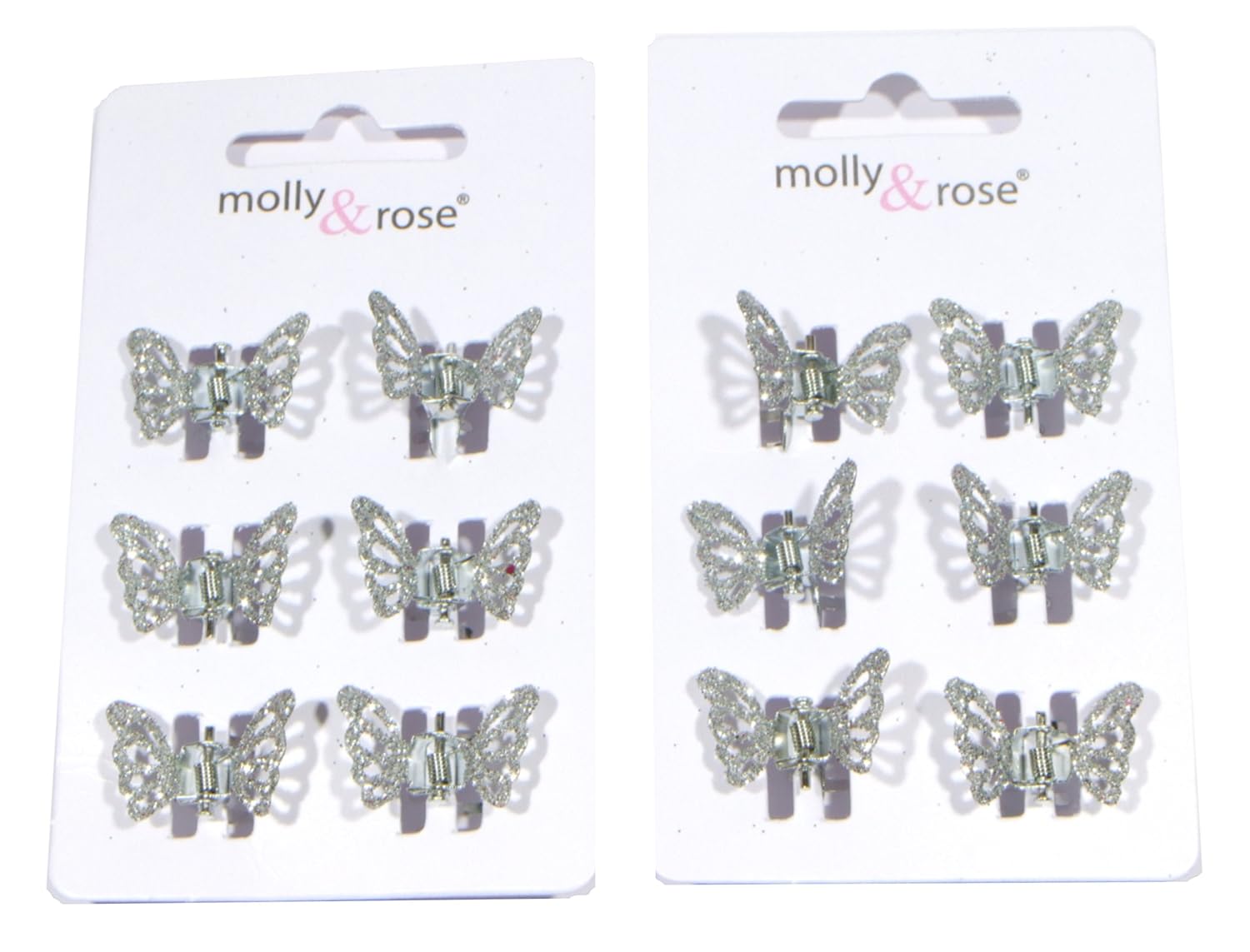 Details About 12 Mini Clamps Multi Colour Glitter Butterfly Small Hair Clips Slides Tiny Grips