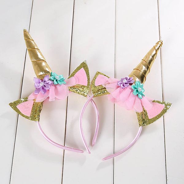 New Party Unicorn Headband The Mermaid Girls Hair Sticks Sequin Gold Floral Baby Headbands Kids Hair Bands Children Hair Accessories A1684