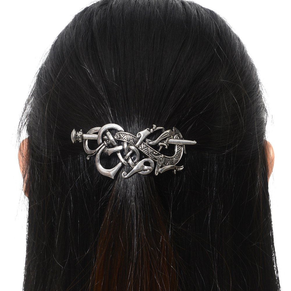 Viking Celtic Hair Clips Hairpin Viking Hair Sticks Ladies Hair Accessories Dragon Clips For Long Hair Slide Pin Irish Antique Silver Hairstick Celtic